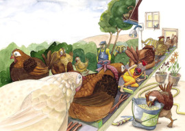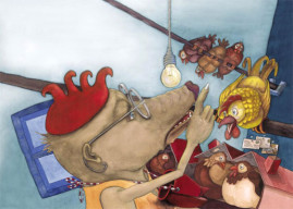 Der Einstieg war einfach: Es sollte eine Geschichte werden, die mit meiner eigenen Kindheit zu tun hatte – etwas, das mich bewegt und geprägt hatte. Ich erinnerte mich an eine Situation, die mich tagelang beschäftigte: Ich konnte einfach nicht herausfinden, wie Hühner Pipi machen. Erst als mein Vater mir eine überraschende Antwort gab, war das Rätsel gelöst.